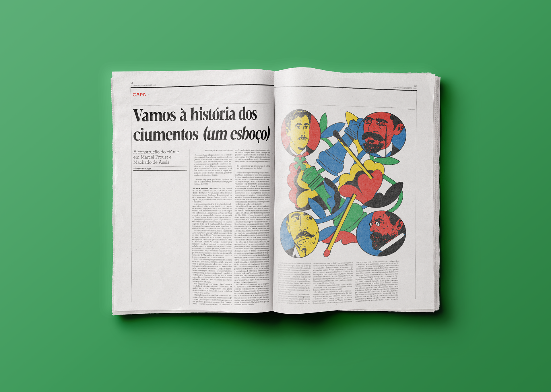 Cover and editorial illustrations for the Brazilian literary journal Pernambuco #199 about the jealousy thematics on Machado de Assis and Proust's work. Commercial project created in 2022 as a freelancer. Client: Pernambuco Jornal Literário Illustration and cover design: Paula Cruz Art direction: Hana Luzia