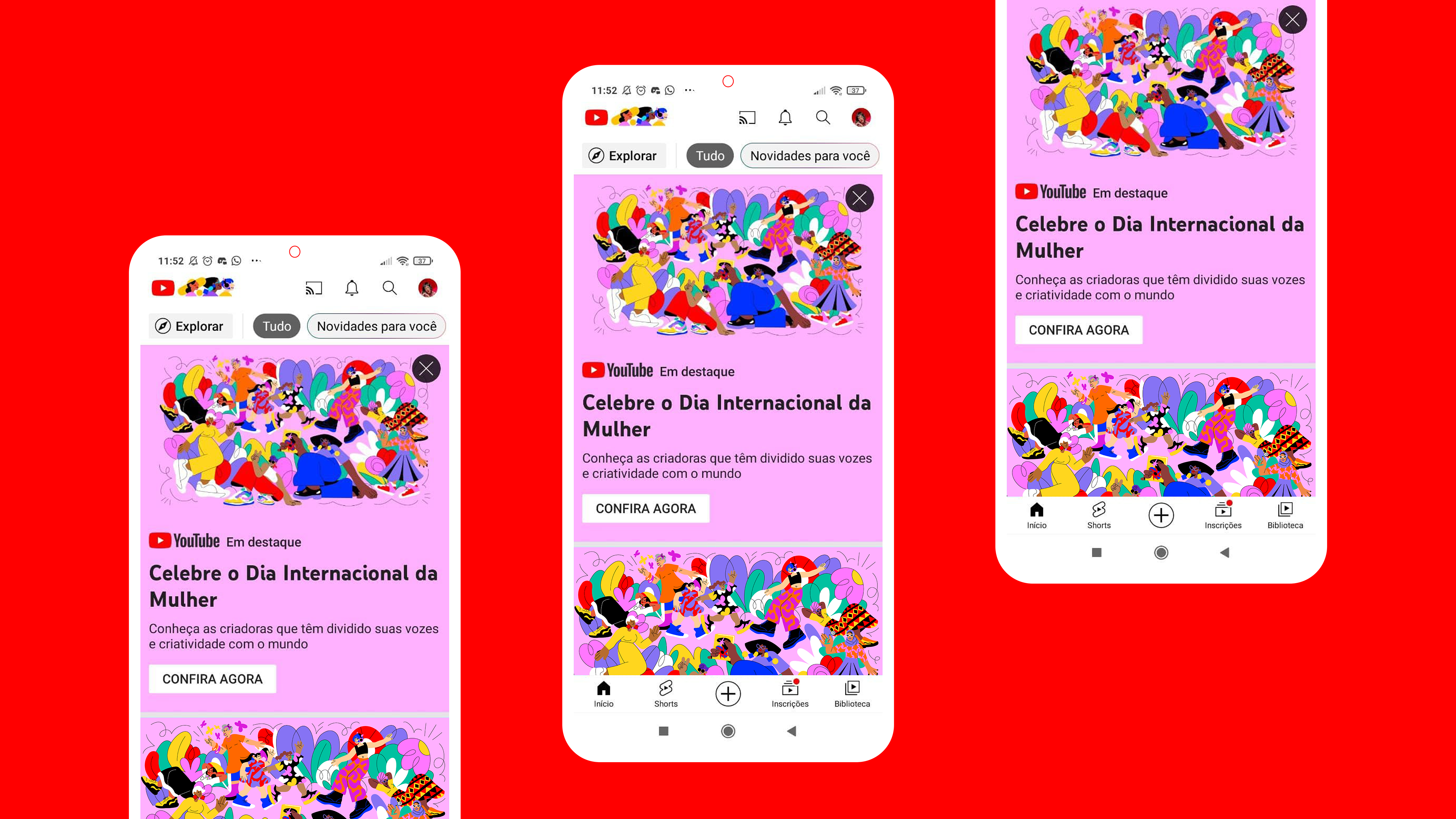Illustrations for Youtube Global for International Women's Day. Project created on 2022 as a freelancer work for Youtube Global. Animation: Wednesday Studio Illustration: Paula Cruz Art direction: Design at Yotuube | Jesse Lefkowitz, Ash Qualischefski, Andrew Lebov